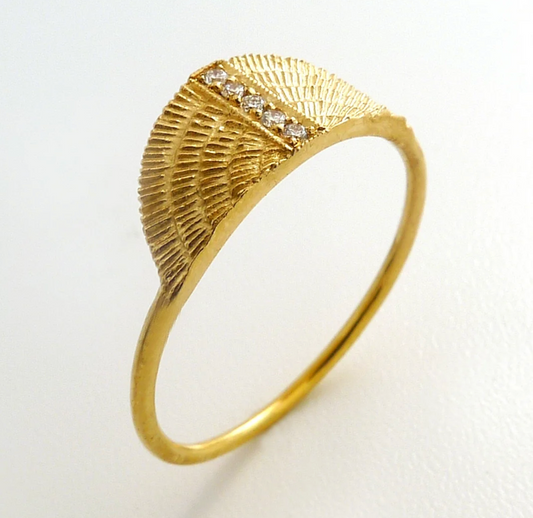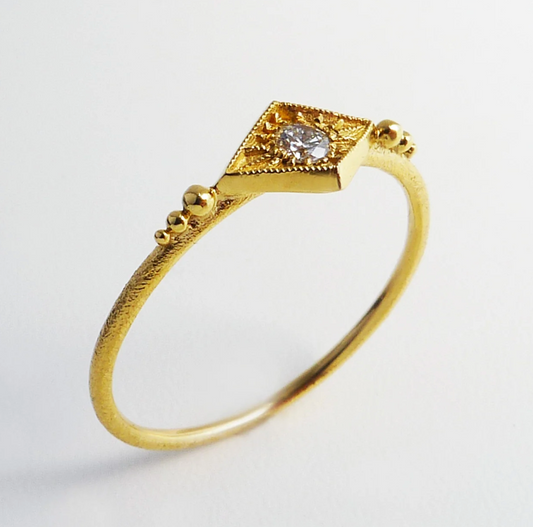 Carefully using old world and modern methods of model making to capture rich and intimate detail, his designs hold a distinctive aesthetic. One that values the human hand in ancient methods while in balance with modern execution. This process often involves spending countless hours working under magnification creating prototypes to insure quality and detail within each piece. While complex and labored in approach, it serves to honor both the craft of goldsmithing and the wearer. Whether a symbol of love, mysticism or celebration of life, great pride is taken in the notion these pieces will be treasured in the lives they become a part of.