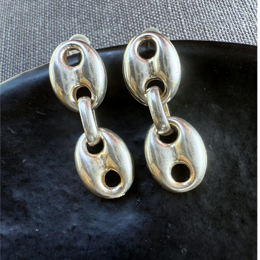 Puffed Mariner XL Double Link Earrings Silver