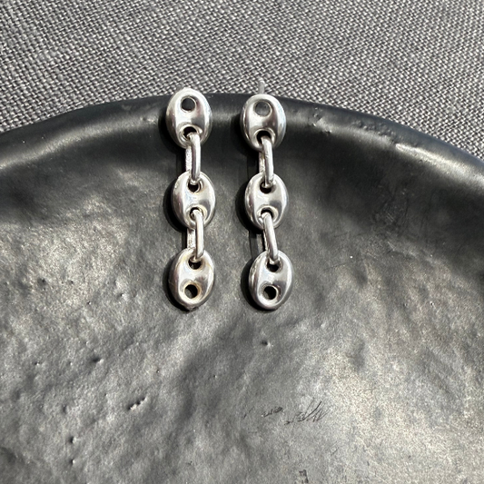 Puffed Mariner Triple Link Earrings Silver