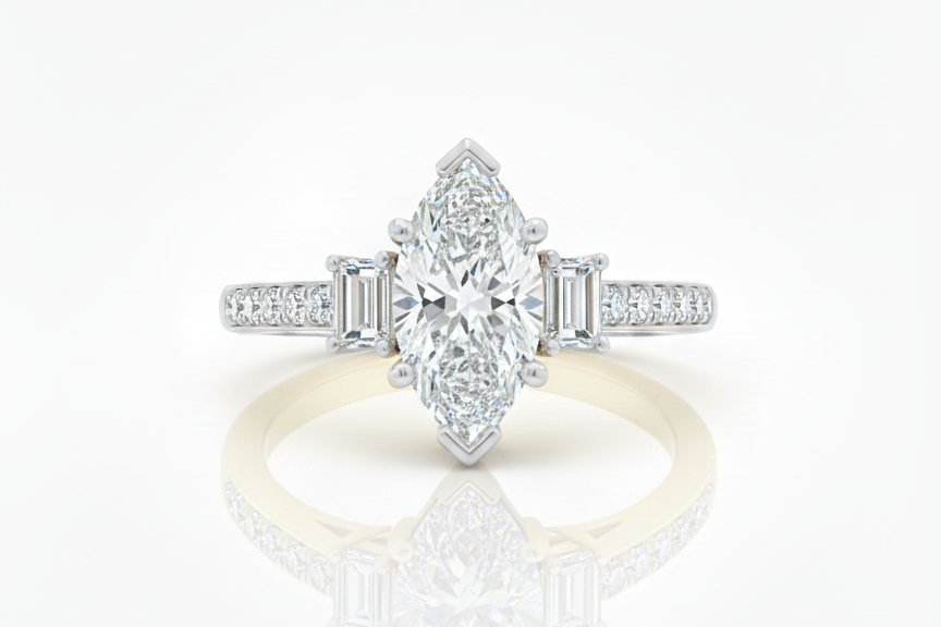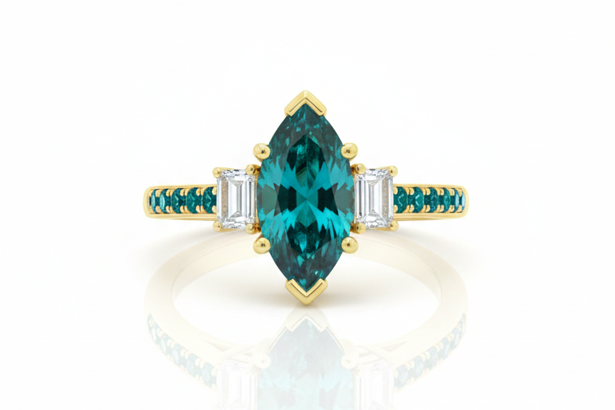 The Aurea engagement ring is a golden promise, a promise to forever. This Luminous piece can be customized with 5 different stone options. We can also source stone shapes outside of these 5 so your ring is as unique as you.