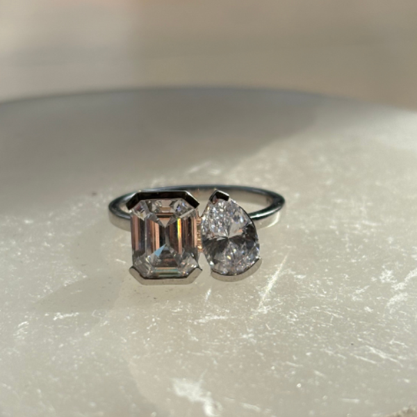 The base price includes a 3 carat Emerald cut stone. Pick which shape of stone you would like to customize with.