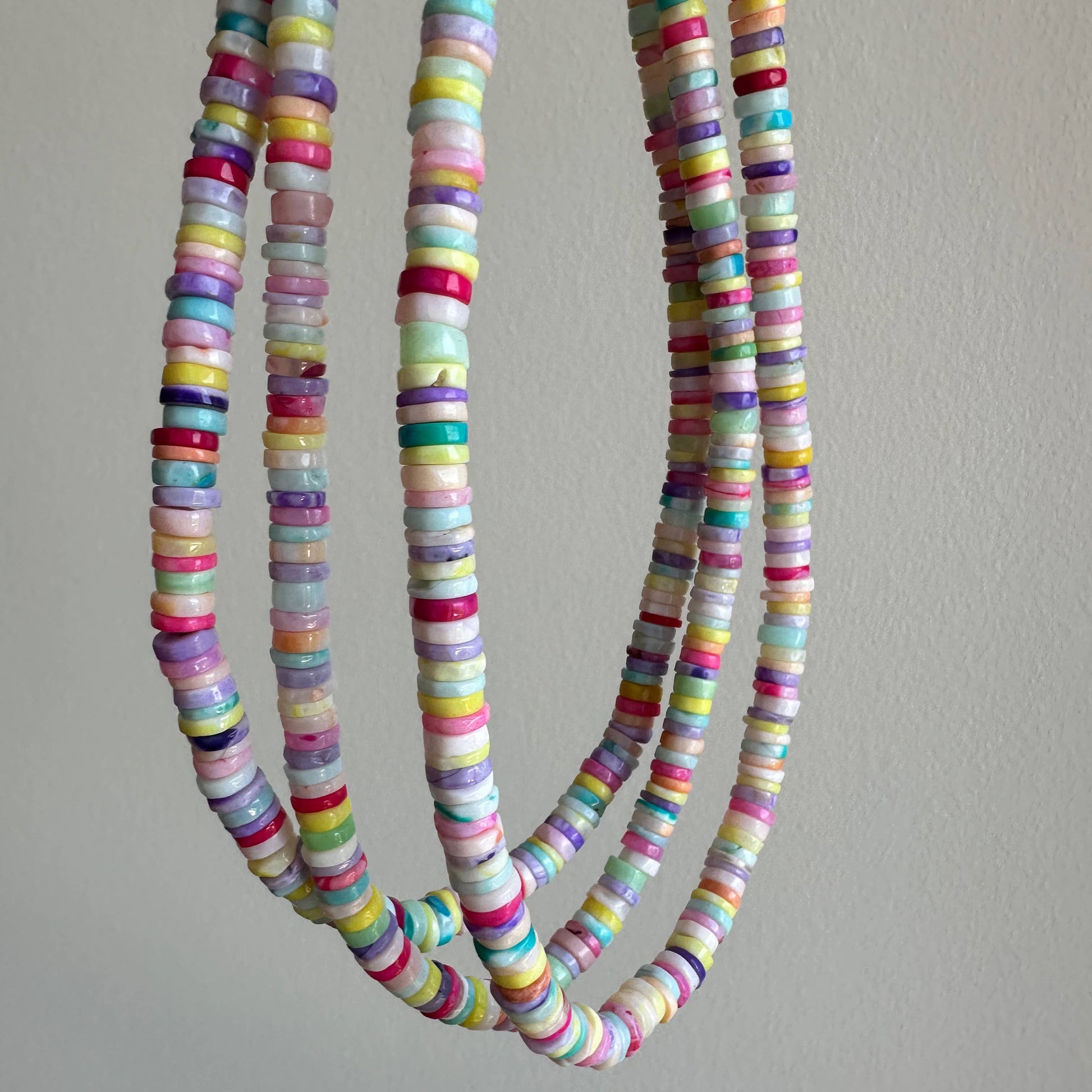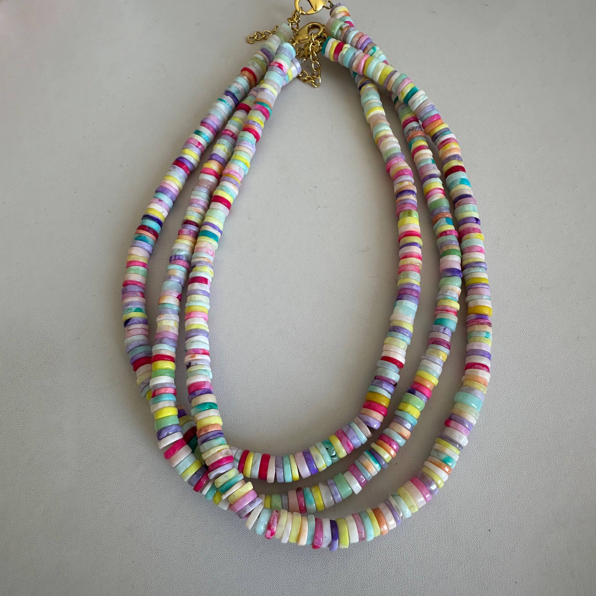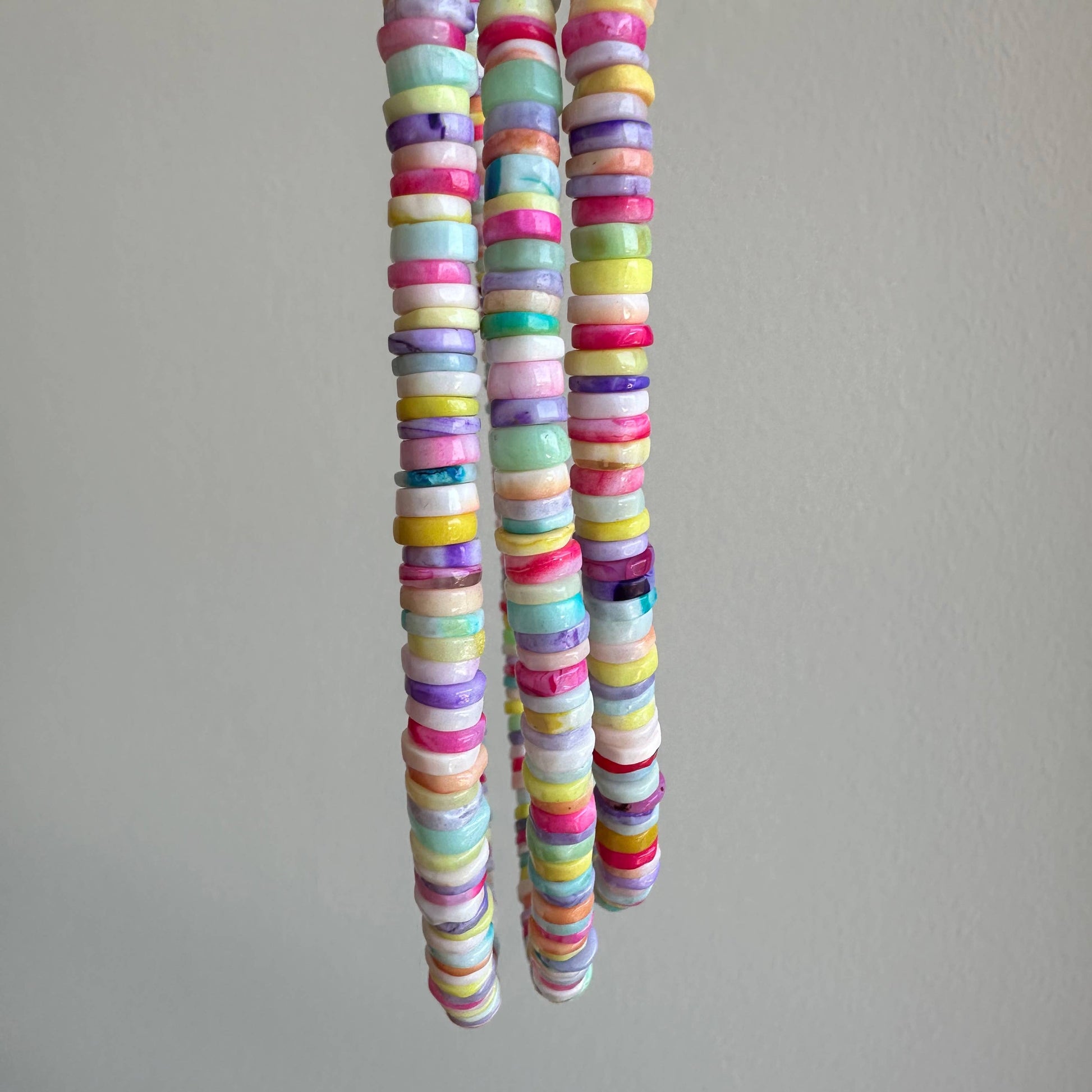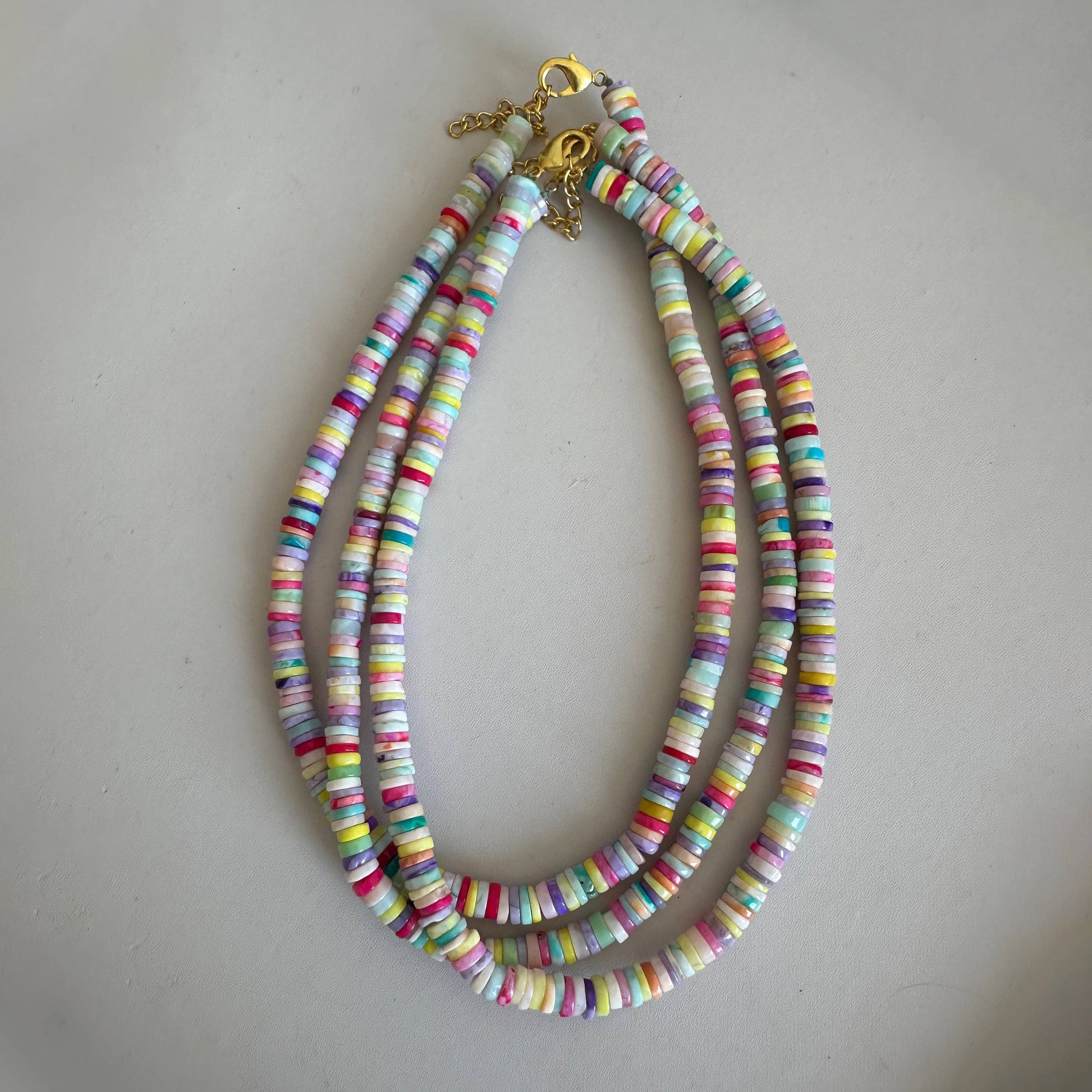 A bright + colorful summer accessory! Necklace is 16" +2" extender with 18K Gold Plated clasp. Please Note: Multiple necklaces are included in photos to show the variation in natural gemstones.