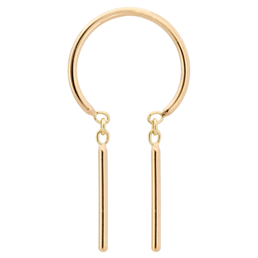 Silent wind chimes that dangle and dance on your ears. These earrings just might be the most noticeable minimalist earrings you’ll ever own. The hoop is slightly smaller and the dangling legs half as long as the the Chime Earring.