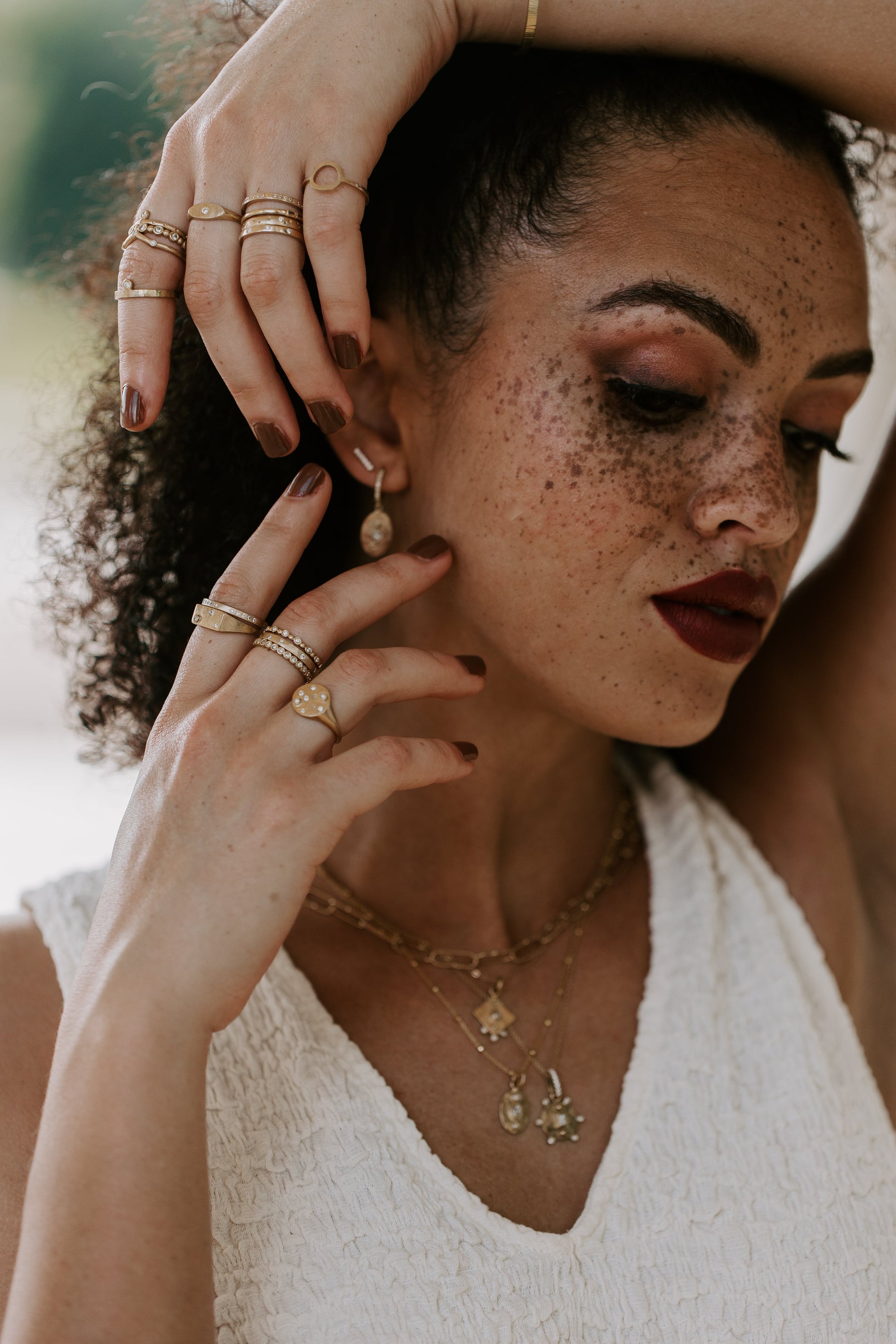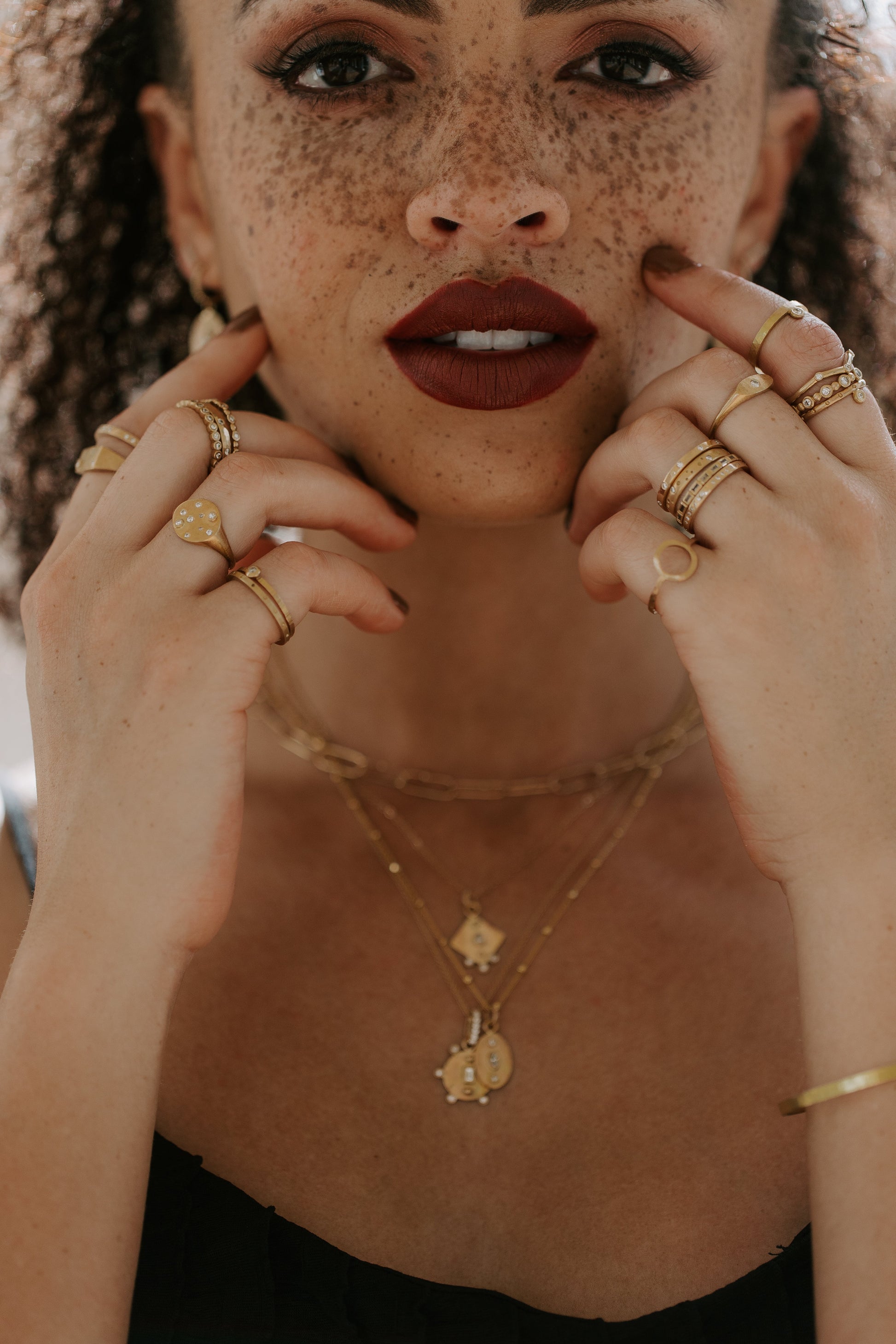 The Carina Signet Ring is finery at its best. Bold and dazzling, let the world know that you mean business–and you’re willing to treat yourself, too. Let the diamonds do the talking.