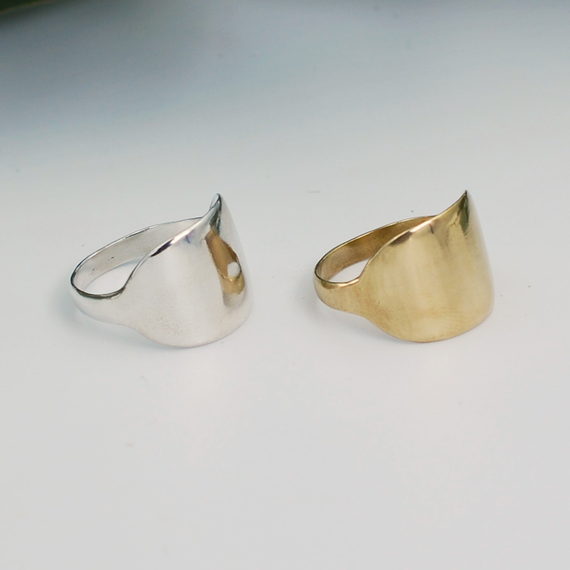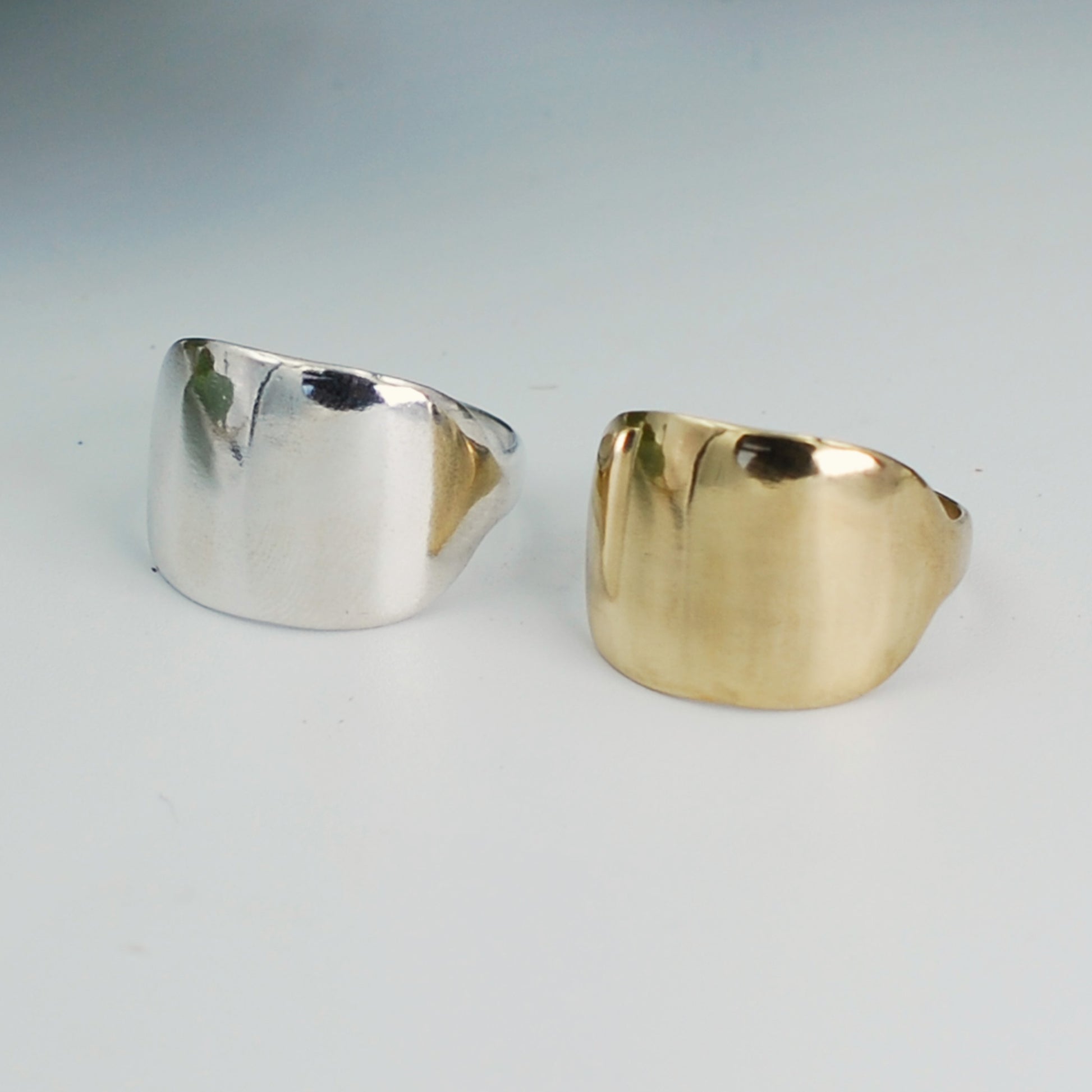 Hand carved super thin cigar band. Gives the appearance of a very wide band with a comfortable slender band along the back for all day wear. Can be made in recycled brass, sterling silver or 10k gold.