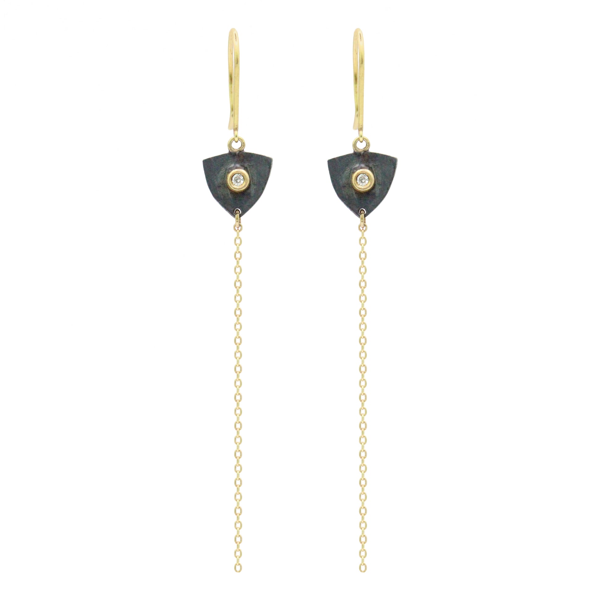 Oxidized sterling silver and 18k yellow gold trillion dangles.