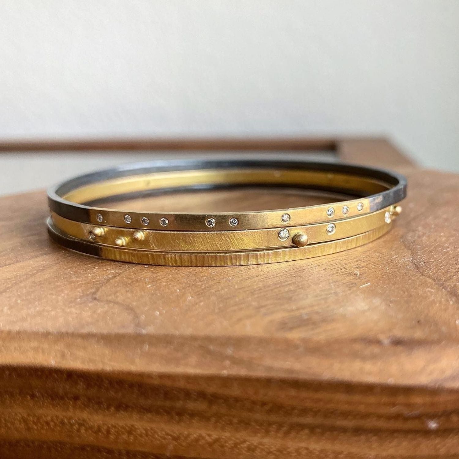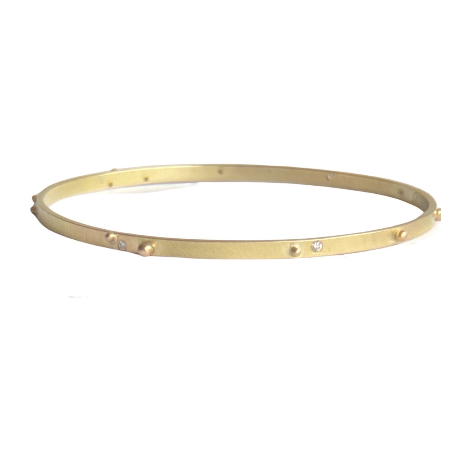 A 14kt yellow gold bangle adorned with scattered dots and diamonds.