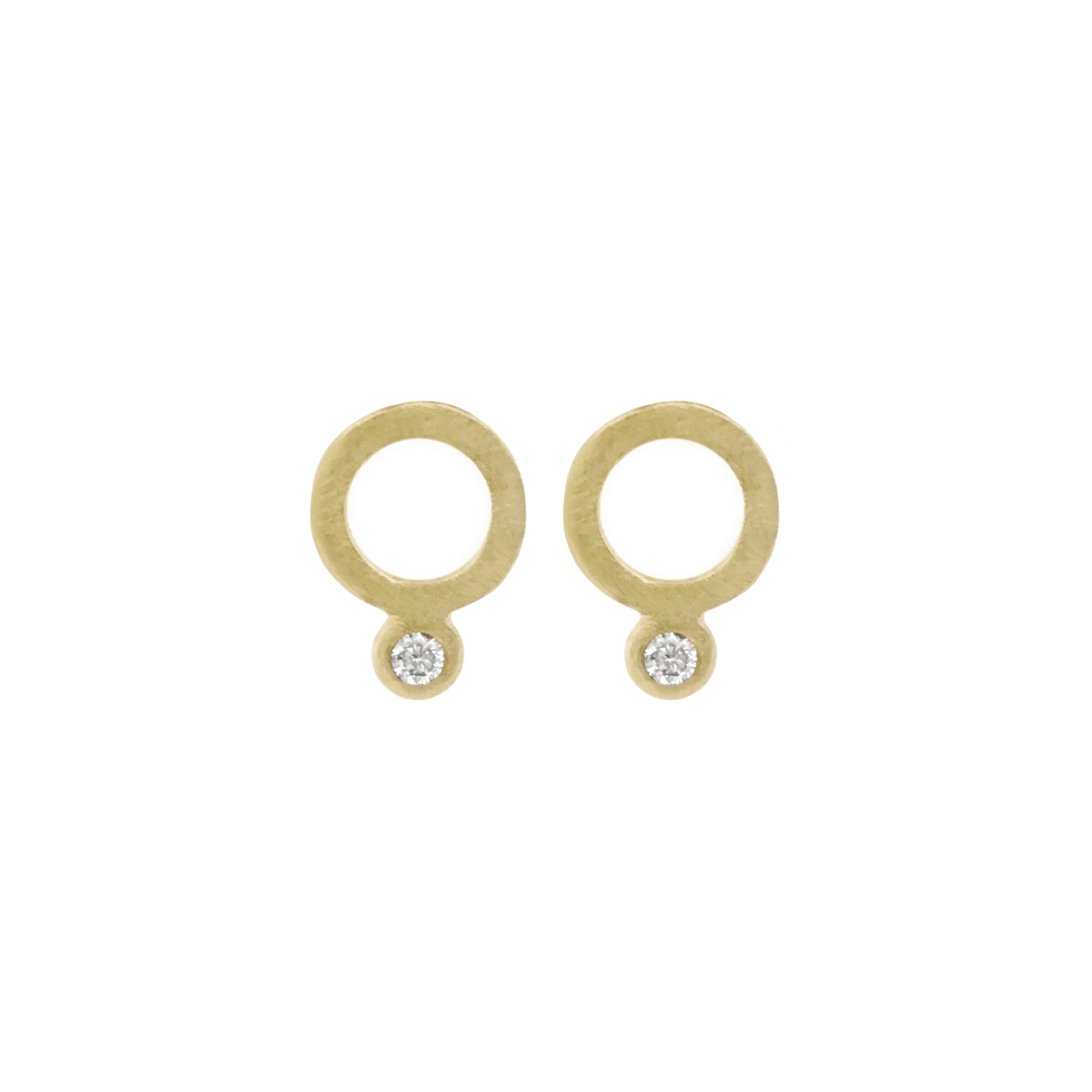 14kt Gold circles with a white diamonds with .03 cttw of brilliant recycled white diamonds.