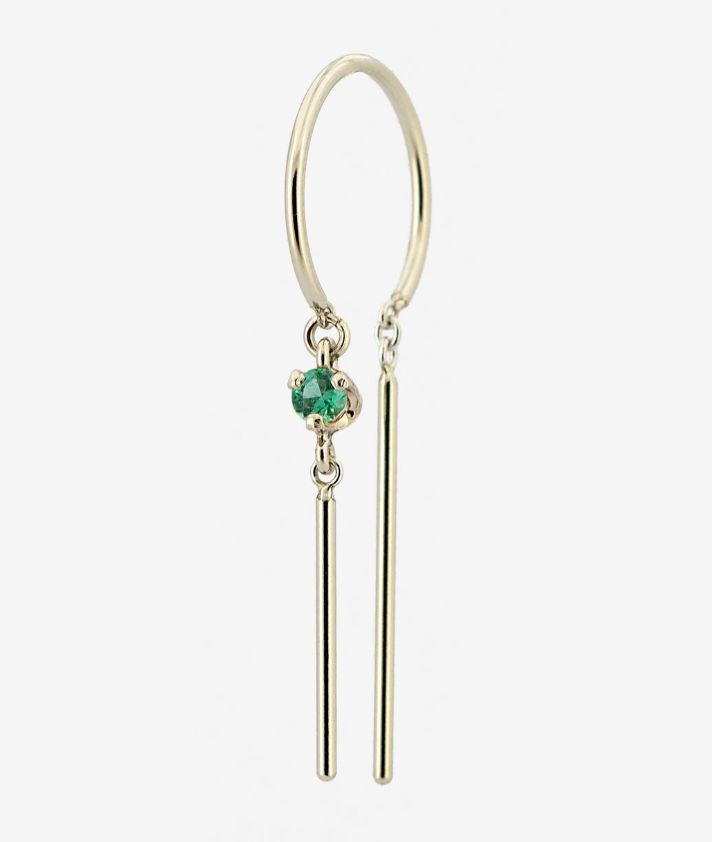 Silent wind chimes that dangle and dance on your ears. These earrings just might be the most noticeable minimalist earrings you’ll ever own. This one adorned with a dangling 2mm prong set diamond.