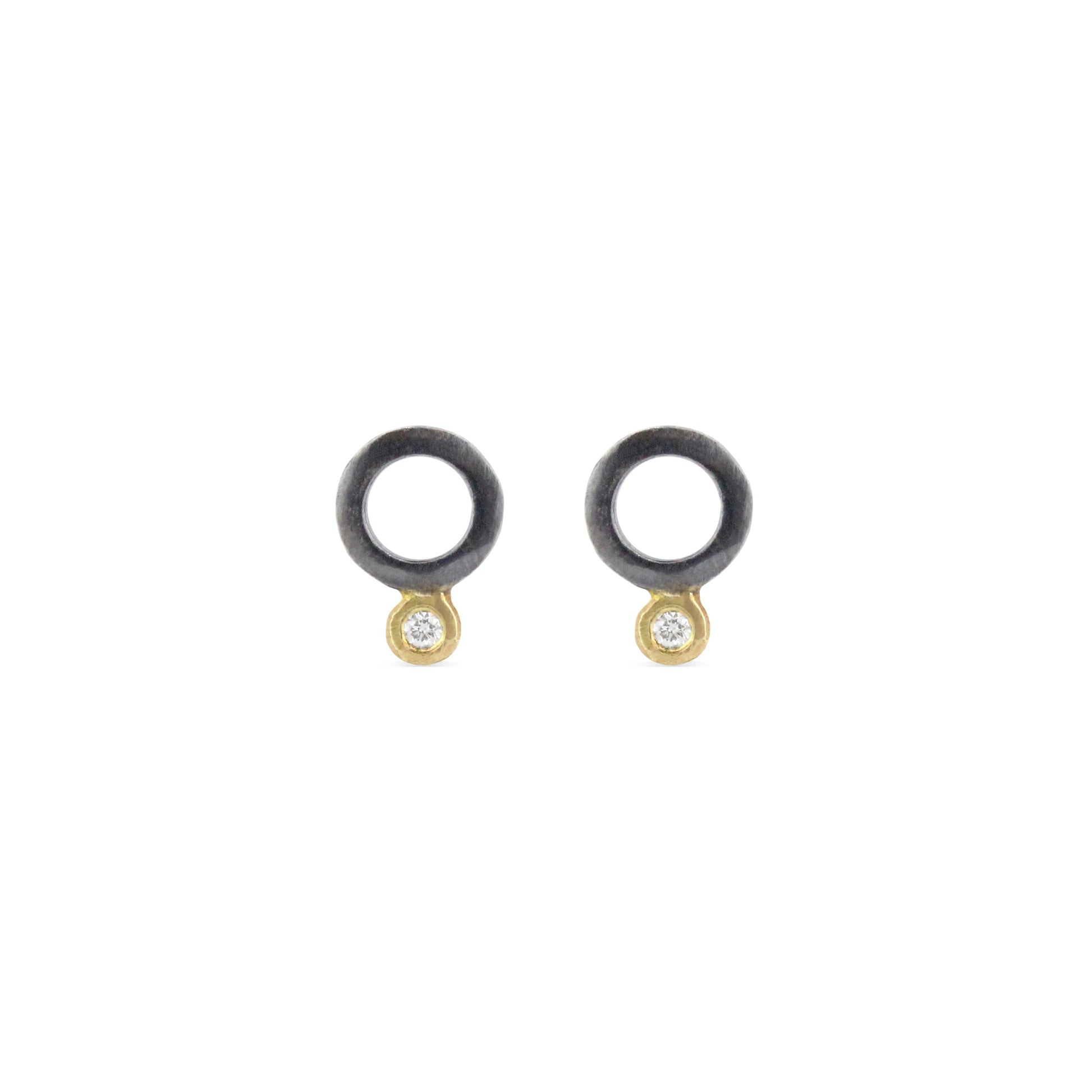Two-Tone oxidized sterling silver is adorned with a 18k detail and .03 ct white diamond.