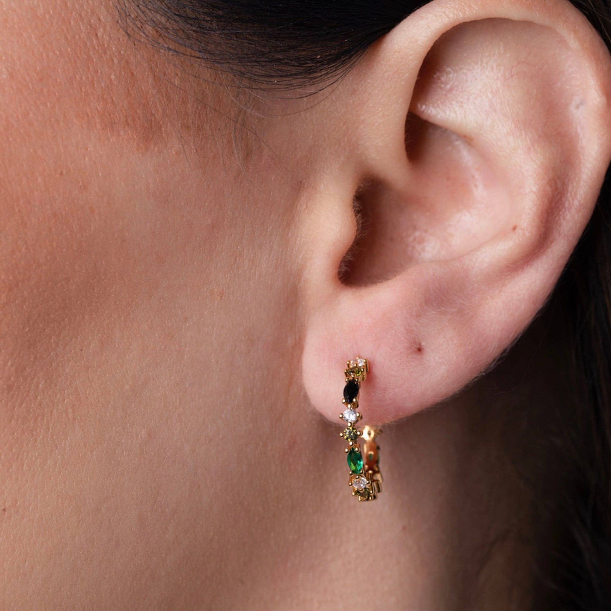 Vibrant green topaz stones are beautifully set in 18kt gold vermeil hoops, offering a subtle statement that will make the perfect addition to your jewelry collection.