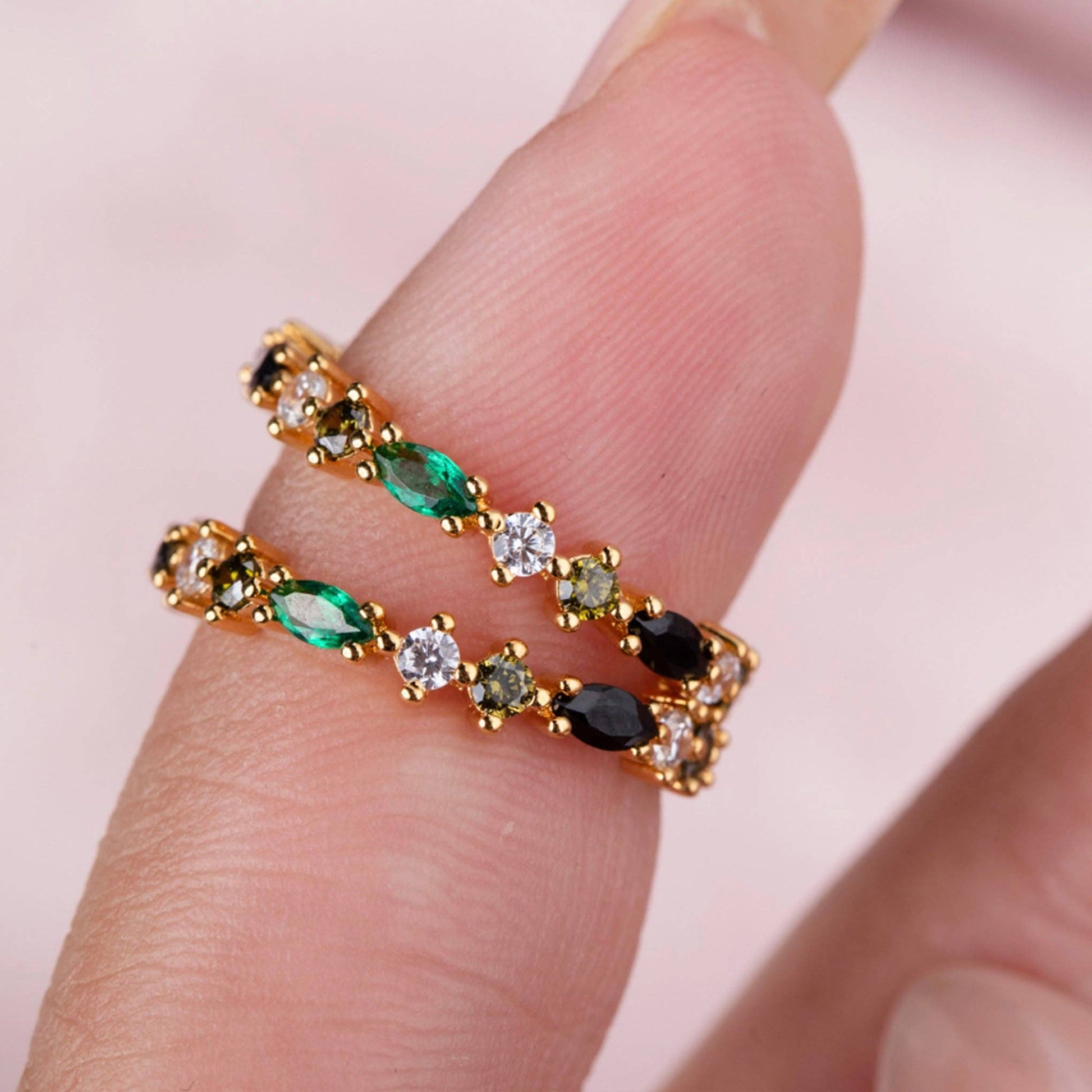 This piece has natural gemstones with natural inclusions. We hand pick all stones for each ring, therefore every ring is different. We cannot guarantee the images online will perfectly reflect the stones you will receive, however each one is beautifully unique!**