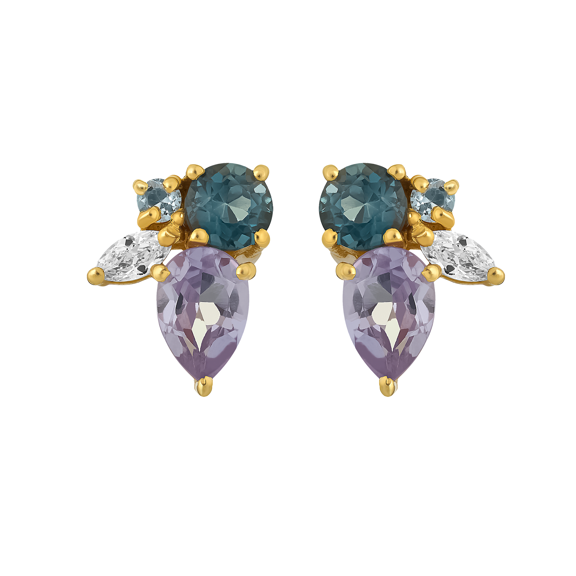 Product Description: 18kt gold vermeil; natural blue topaz; lab grown alexandrite; natural white topaz Video not supported.
