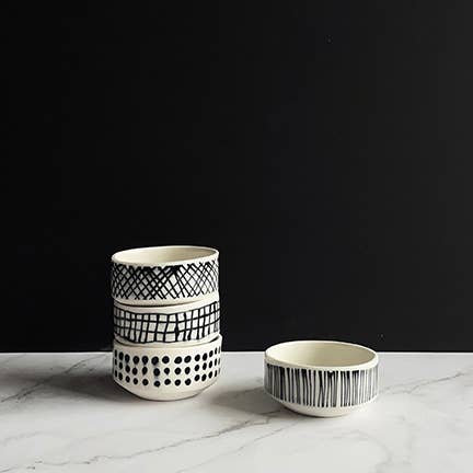 These handprinted dishes happily hold the smallest treasures. A clear glaze pulls on the decoration in the hot kiln to create striations in the surface, giving unique originality to each finished pot. Fired in an electric kiln to 2200 degrees F with handcrafted glazes. Expect imperfections (that’s what makes handmade pottery - and life - interesting!) Dimensions: 3x3x1.5"