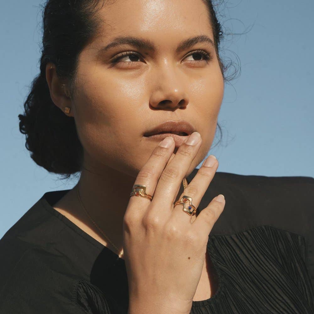 Soft angles and negative space come together for one ring that gives the illusion of two.