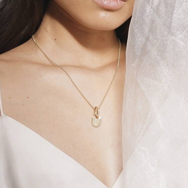 This handmade linked pendant is perfectly balanced with the small round details of the gold-filled ball chain.