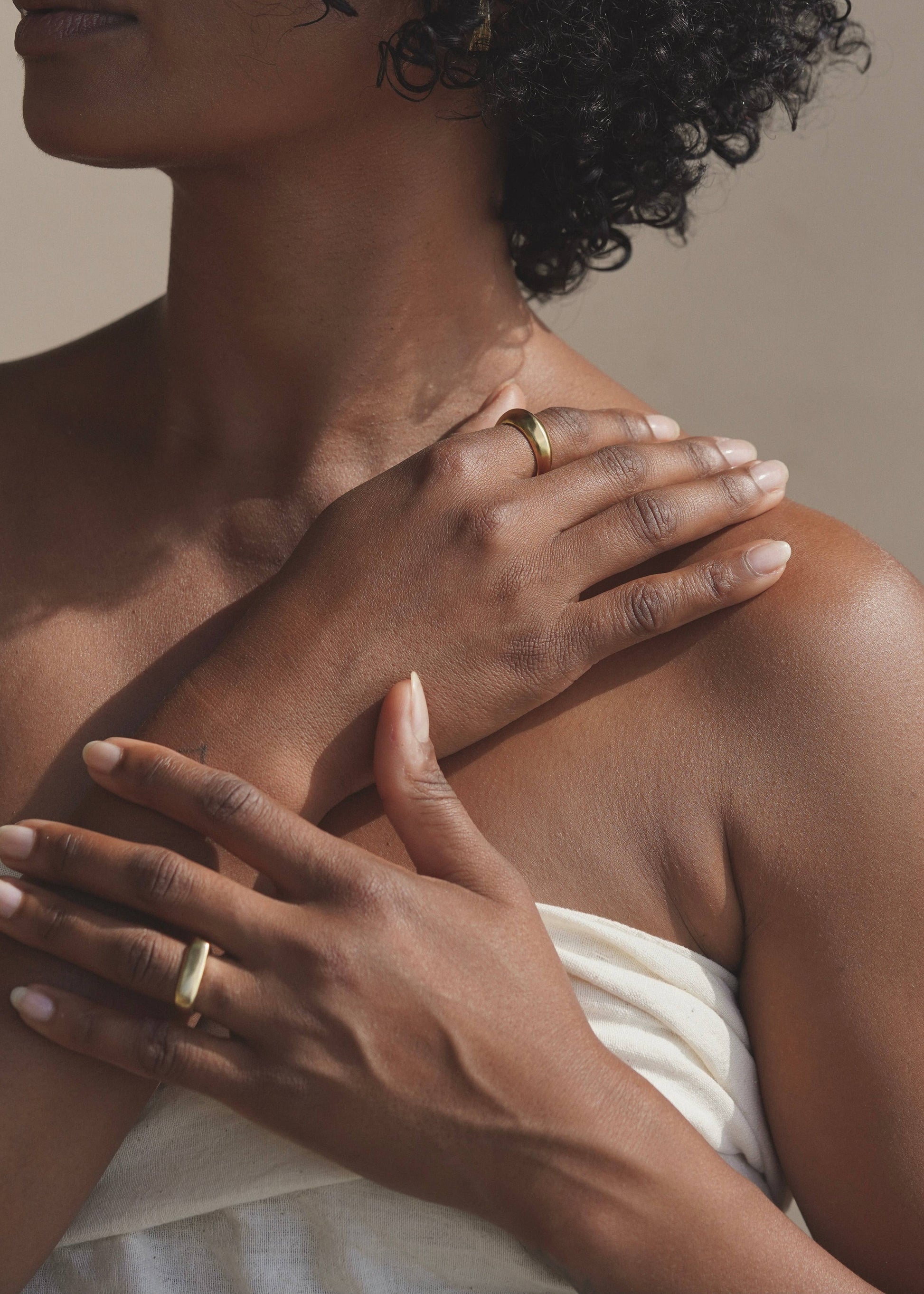 Bold domed convex hand carved hollow ring with a rounded edge. A collection staple, stack it with your favorite rings or wear alone as a statement piece. Fits well on any finger, especially pointer + middle fingers.