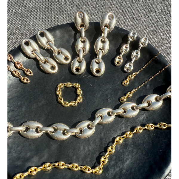 This chain is expertly crafted in sterling silver with a lightweight, hollow core. Due to its delicate nature, please handle with care—dented links may not be repairable. To preserve its beauty and integrity, we recommend storing it properly and removing it during physical activity or situations where it could be exposed to impact or stress.