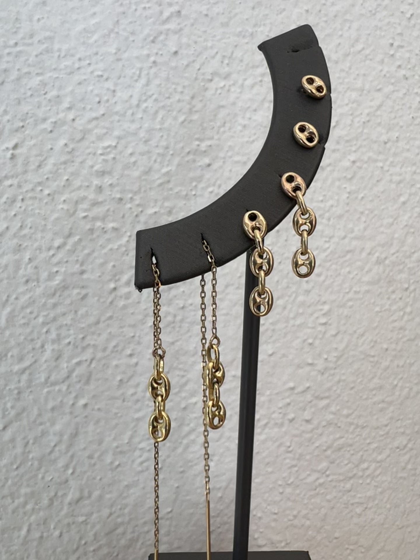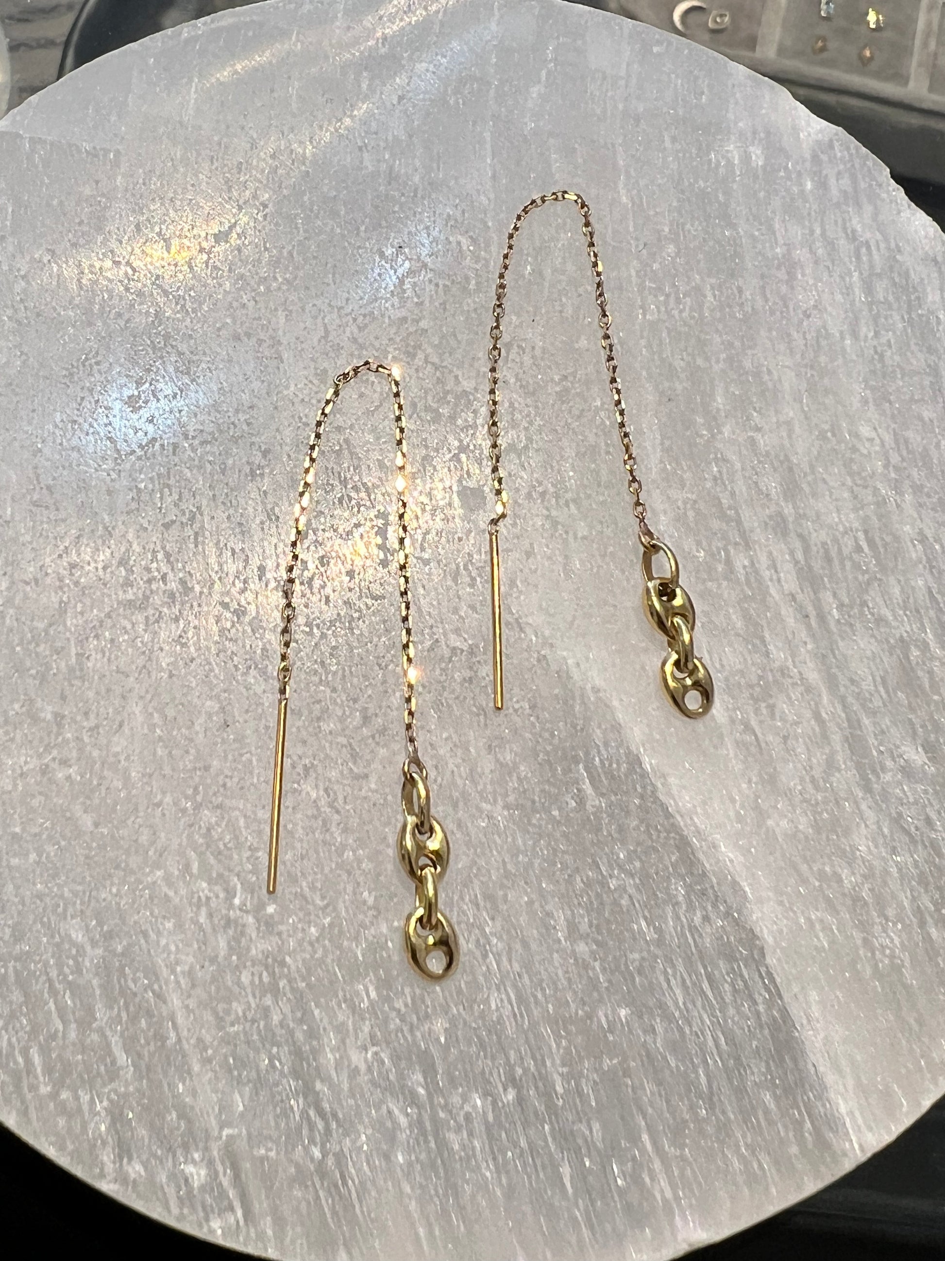 14k yellow gold puffed mariner threader earring. We love all of the movement that this earring has.