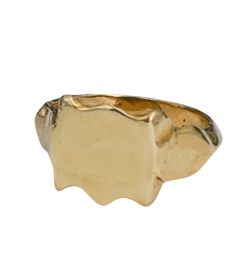 This take on a classic signet ring is based on a vintage Turkish ring. Hand carved and created using the ancient lost wax technique. The ring still has remnants of the shaping of wax on the inside of ring for added character. A special statement piece that can be worn day in and day out.