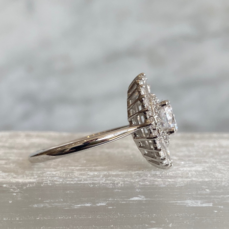 This ring can be customized using round or oval center stones as well as various shapes of stones for the halo. You can also select the center stone style and quality. Please get in touch to find out more. This ring is made to order.
