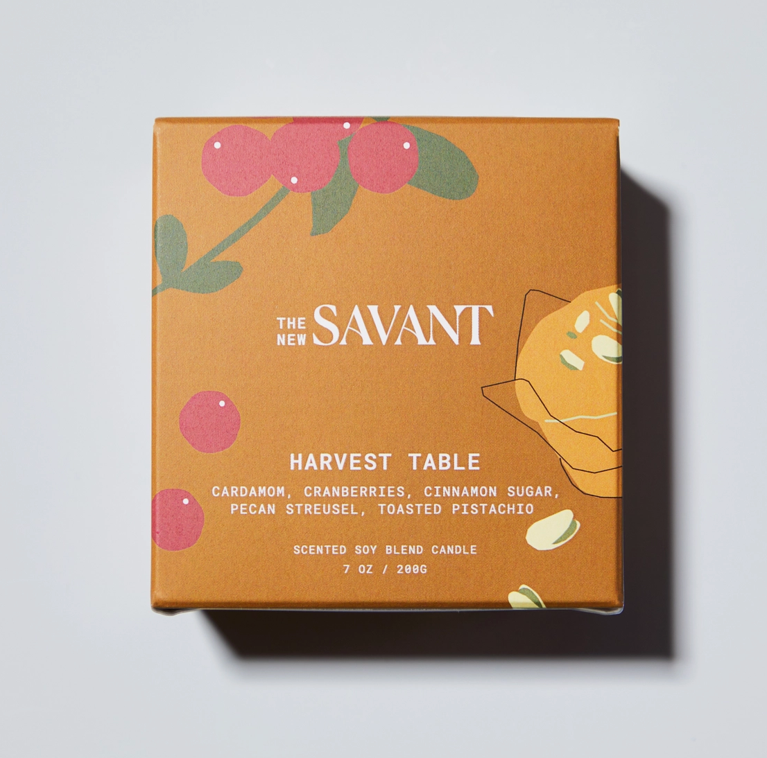 Harvest Table is Ingrid's take on pumpkin spice without ~technically~ being pumpkin spice. Inspired by her love of 90's cooking shows and unabashed enthusiasm for fall, this fragrance is nutty, gourmand, and deliciously balanced with notes of warm cardamom and a touch of tart cranberry for unexpected freshness. No matter where you are, when you light this candle, you'll feel right at home.