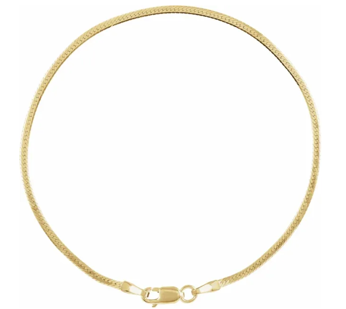 14k herringbone chain bracelet is flexible and comes in a few different widths.